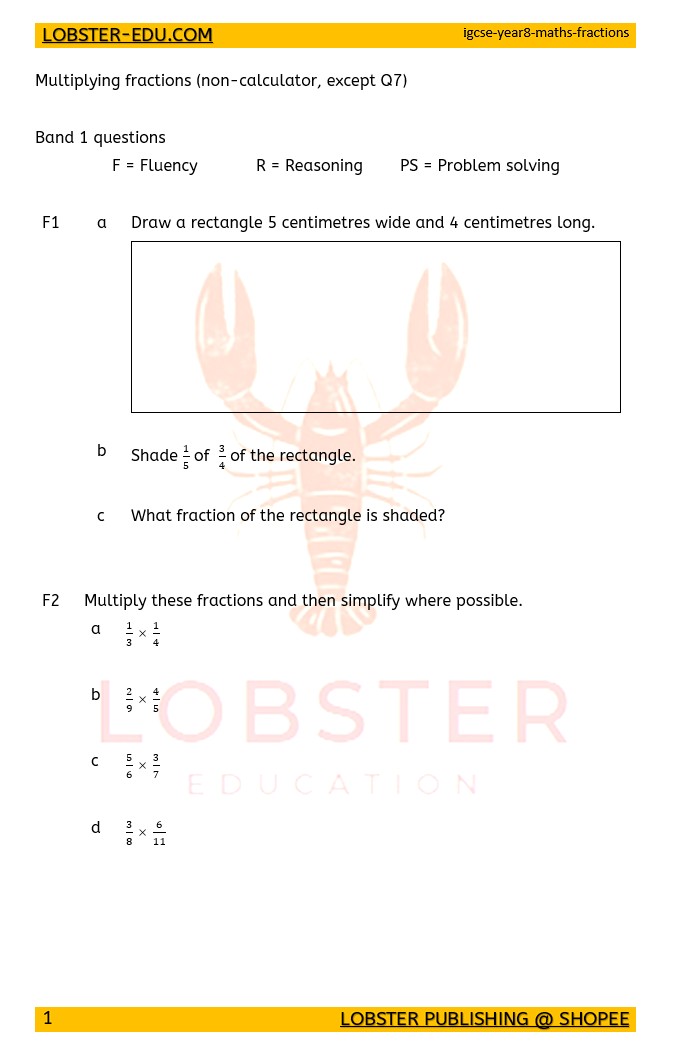 Cambridge IGCSE Maths (0580) – Fractions (Multiply) – 1